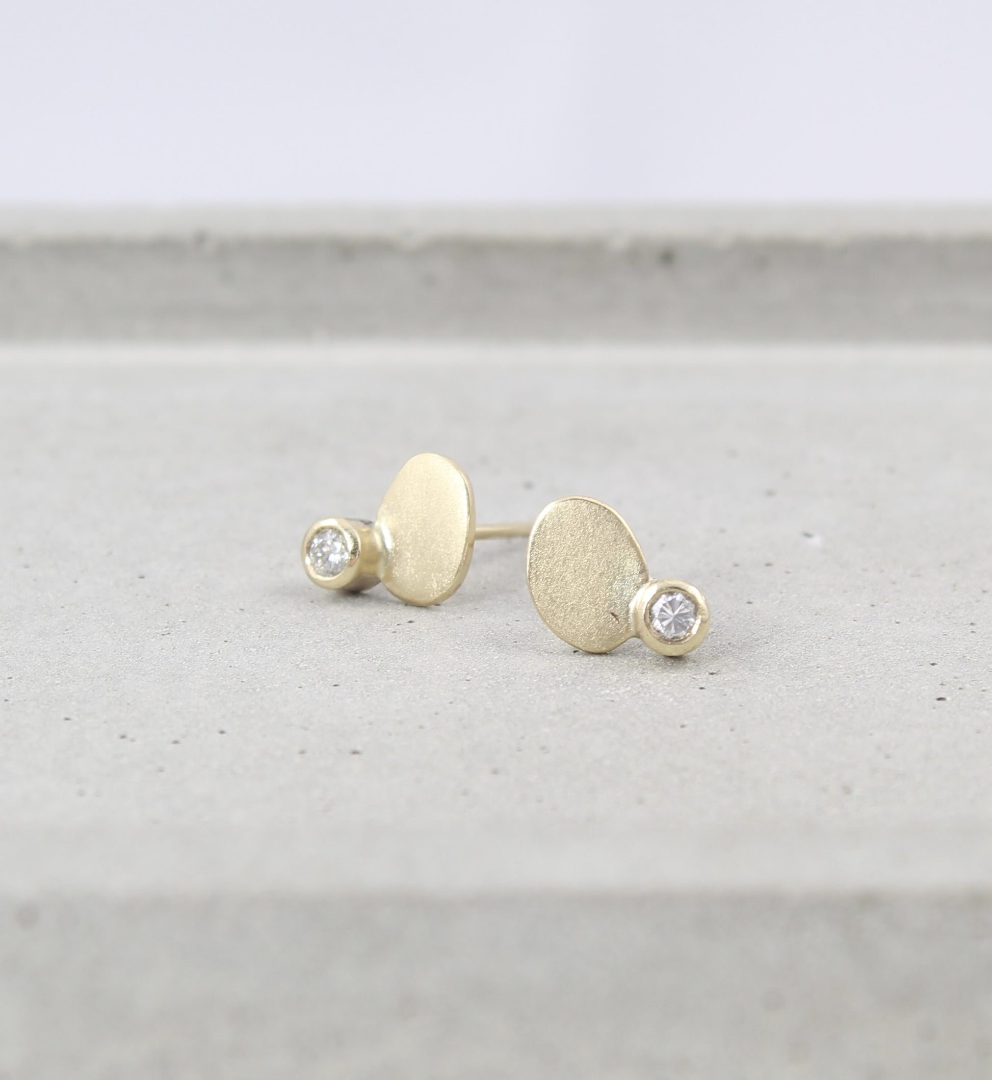 These 9ct gold stud earrings offer a contemporary twist on timeless elegance. Each sleek leaf inspired stud features a single brilliant-cut diamond, bezel-set subtly to one side — a refined detail that adds a sense of asymmetry and modern charm.