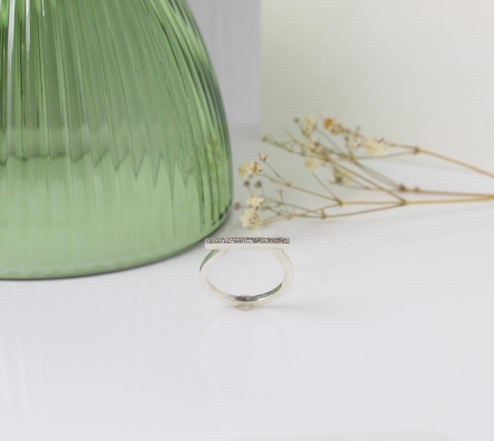 Elevate your everyday style with this handmade and striking Silver Bar Ring featuring a bold sand-textured finish that catches the light with organic brilliance. Handcrafted in solid sterling silver, each bar is uniquely marked with a raw, tactile surface reminiscent of weathered stone.
