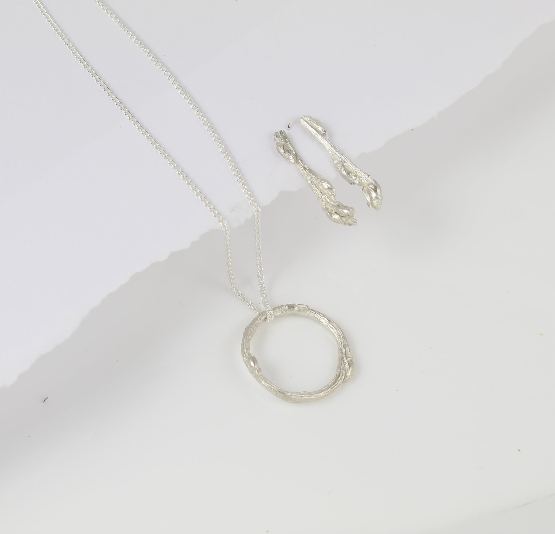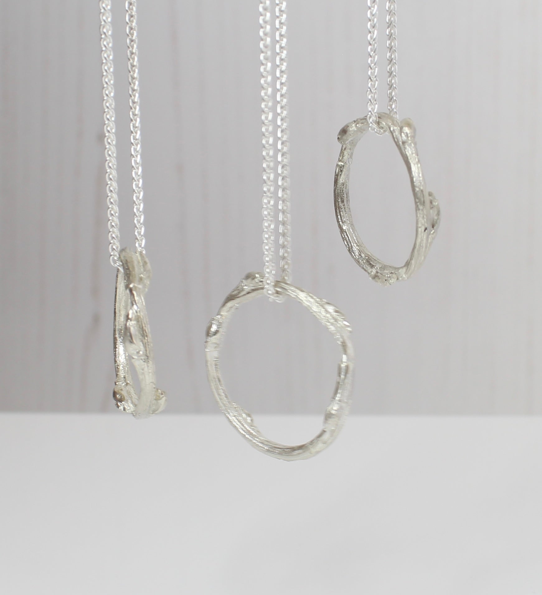 If you love organic, nature inspired jewellery then this piece could be for you. Minimalistic in style, the wreaths do vary slightly in size as each piece is handmade but they are approximately 25mm in diameter.